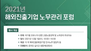 노사발전재단은 12월 1일 오전 10시, 「2021년 해외진출기업 노무관리 포럼」을 온라인으로 개최했다.