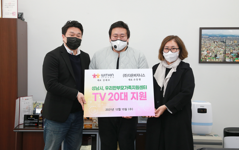 시티브TV(대표 손동현)와 사단법인 위드인사람과함께(대표 김대호) 우리한부모가족지원센터(이지우 센터장)이 참석한 가운데 어려움을 겪는 한부모가정을 응원하고 따뜻한 연말을 보낼수있도록 15일 성남시의회에서 TV 20대전달식을 가졌다.