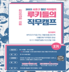 서울 서초구는 코로나19 장기화로 취업에 어려움을 겪는 청년들에게 기업 현직자들과 함께 다양한 직무 체험을 쌓는 ‘2022 서초구 청년 직무캠프’를 이달부터 모집 운영한다고 밝혔다.