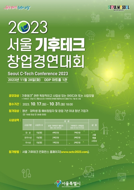 서울시, 기후테크 콘퍼런스 11월 28일 DDP에서 개최… 창업 경연 및 전시 등 참가자 모집