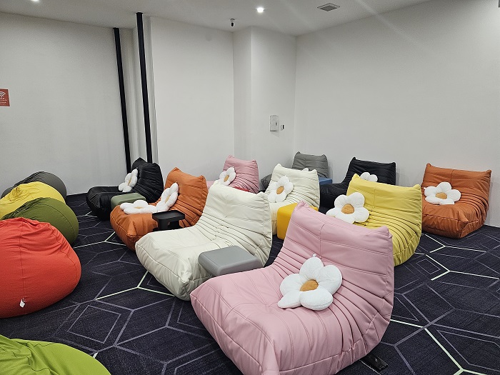 또한, 이야기하며 쉴 수 있는 카페테리아 공간과 조용하게 쉴 수 있는 휴식 공간으로 나누어져 있어 원하는 곳에서 휴식을 취할 수 있다.