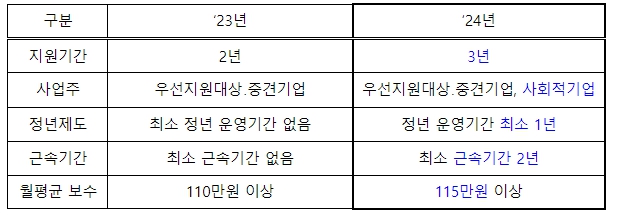 고용노동부는 ‘20년 제도 시행 이후 처음으로 지원기간을 2년에서 3년으로 연장한다고 밝혔다.