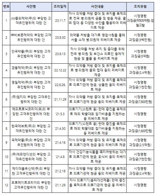 앞으로도 공정위는 보건복지부, 식약처 등 유관 기관과 처분 결과를 공유하는 등 의약품 시장에 만연한 리베이트 행위를 근절하고 공정거래질서를 확립할 수 있도록 불공정행위에 대한 감시를 지속해 나갈 것이다.