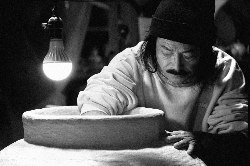 그는 인위적 장식이나 완벽을 거부하고, 자연과 인간이 공존하는 흔적 그대로를 쫒아 우주의 잔영을 흙 속에 남긴다.