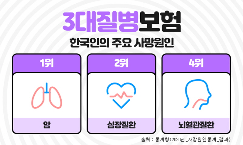 실손의료비 보험은 복수로 가입해도 중복보장이 안되지만 3대질병진단비 보험은 중복보장이 가능하므로 중대질병으로 인해 경제활동을 할 수 없게 되거나 높은 간병비 등으로 인한 경제적인 부담에 대비할 수 있도록 진단비보험을 여러 개 마련해두는 것도 금전적 문제를 해결하는 하나의 방법이 될 수 있다.