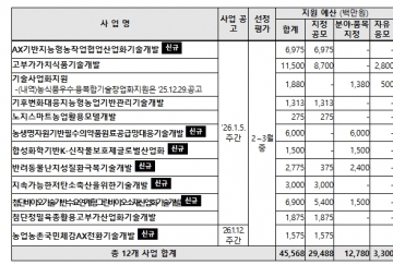 농식품부, 2026년도 연구개발사업 시행계획 통합공고 및 2월 10일까지 12개 연구개발사업에 대한 신청서 접수