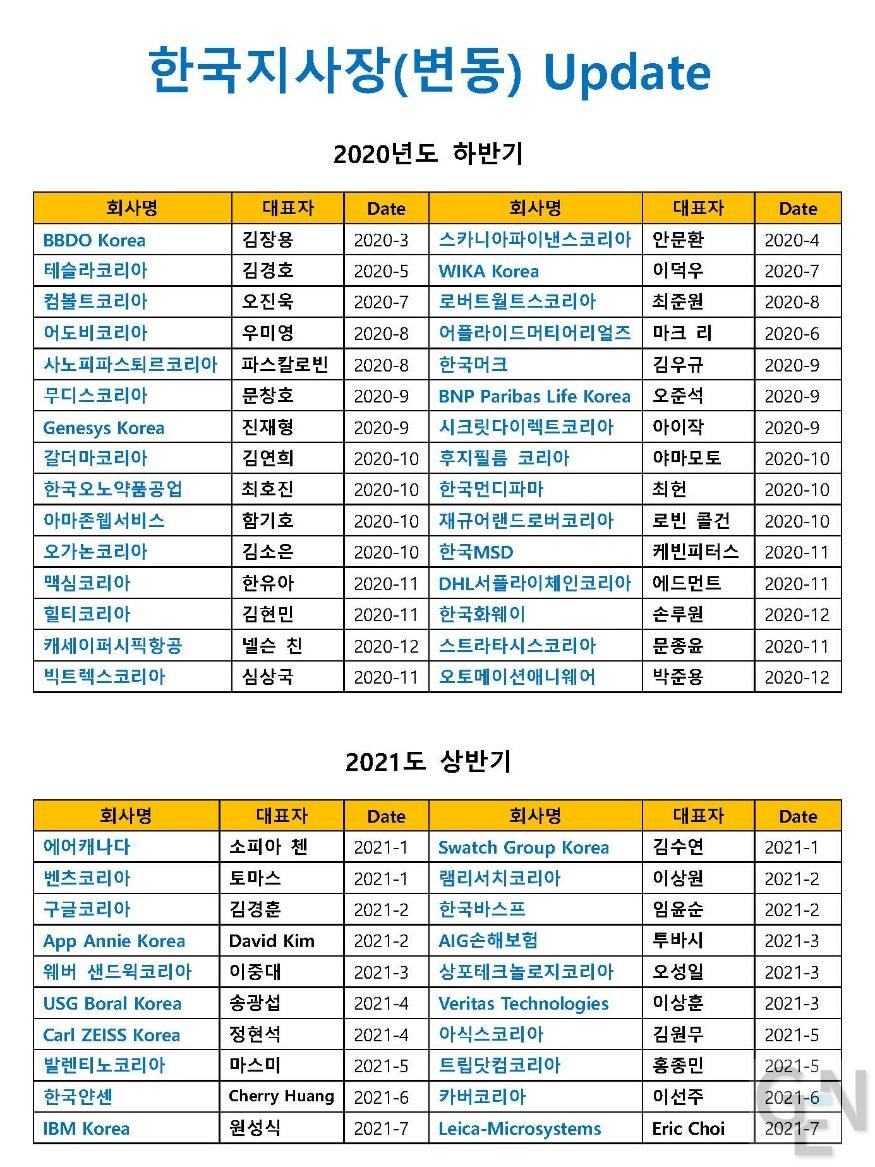 코로나19의 영향으로 범세게적인 경제위기가 몰아치고 한국도 그 여파에 어려움을 겼는과정에서 작년 하반기의 대거 한국지사장 물갈이 교체에 이어 올해 상반기의 지사장 교체는 어려운 경제위기를 극복해 가고자하는 글로벌기업 본사들의 강한 의지로 보여진다.