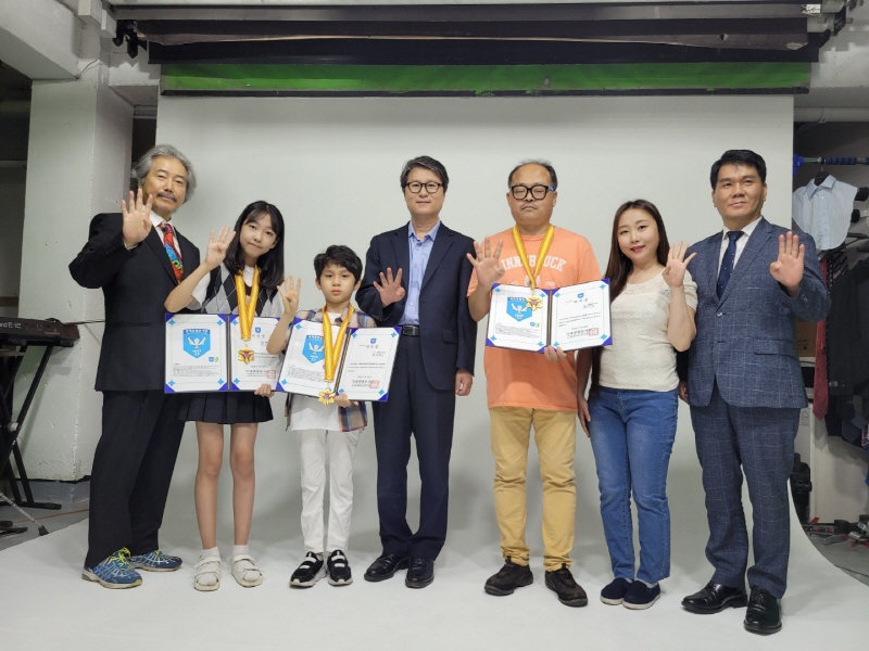 이계영 배우,이예인 홍보대사,황희 홍보대사,김은정 공동대표,신승환 사무처장,이유린 배우,정연표 아시아청년연맹 이사장(사진속 손가락 네개는 충,효,예,의를 뜻하며,국제엔젤봉사단의 섭립취지다)