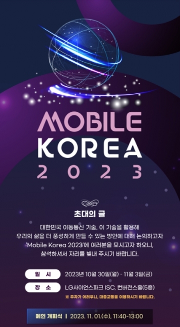 「6G Global 2023」의 첫날인 11월 1일에는 「모바일코리아 2023」 개막식이 개최되는데, 이상엽 6G포럼 대표의장의 개회사, 장경희 6G포럼 집행위원장의 환영사, 과기정통부 홍진배 네트워크정책실장의 축사에 이어, 차세대 네트워크 연구개발 등 유공자에 대해 과기정통부 장관표창이 진행된다.