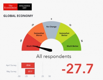 2차 글로벌 비즈니스 바로미터: 전 세계 경영진들은 평균 -27.7점의 수치로 향후 3개월간 세계 경제에 대해 여전히 부정적으로 전망했다