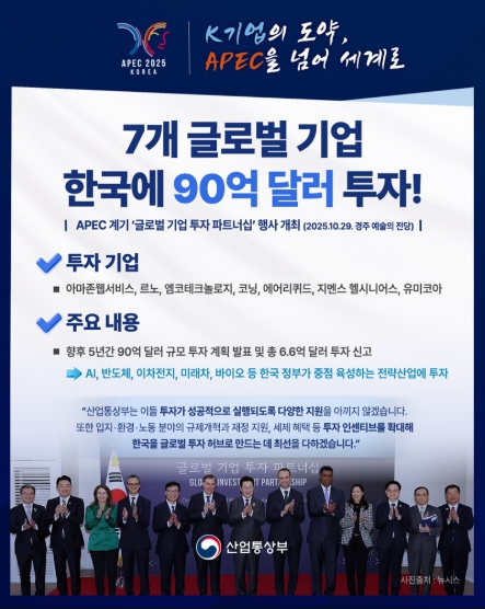 7개 글로벌 기업 한국에 90억 달러 투자!