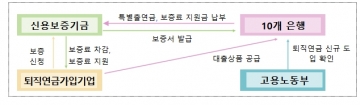 고용노동부 주관으로 민·관·공이 협력하여 실시하는 이번 사업을 통해, 10개 은행은 총 132억원을 신용보증기금에 출연했다. 그리고 신용보증기금에서는 이를 재원으로 퇴직연금제도를 신규 도입한 중소기업이 경영자금을 대출받을 수 있도록 대출금액에 대하여 기업당 최대 5억원, 총량 약 3,300억원 규모의 ‘특별출연 협약보증’ 및 ‘보증료 지원 협약보증’을 지원할 예정이다. 중소기업은 협약보증을 토대로 10개 은행에서 경영자금을 대출받을 수 있다.